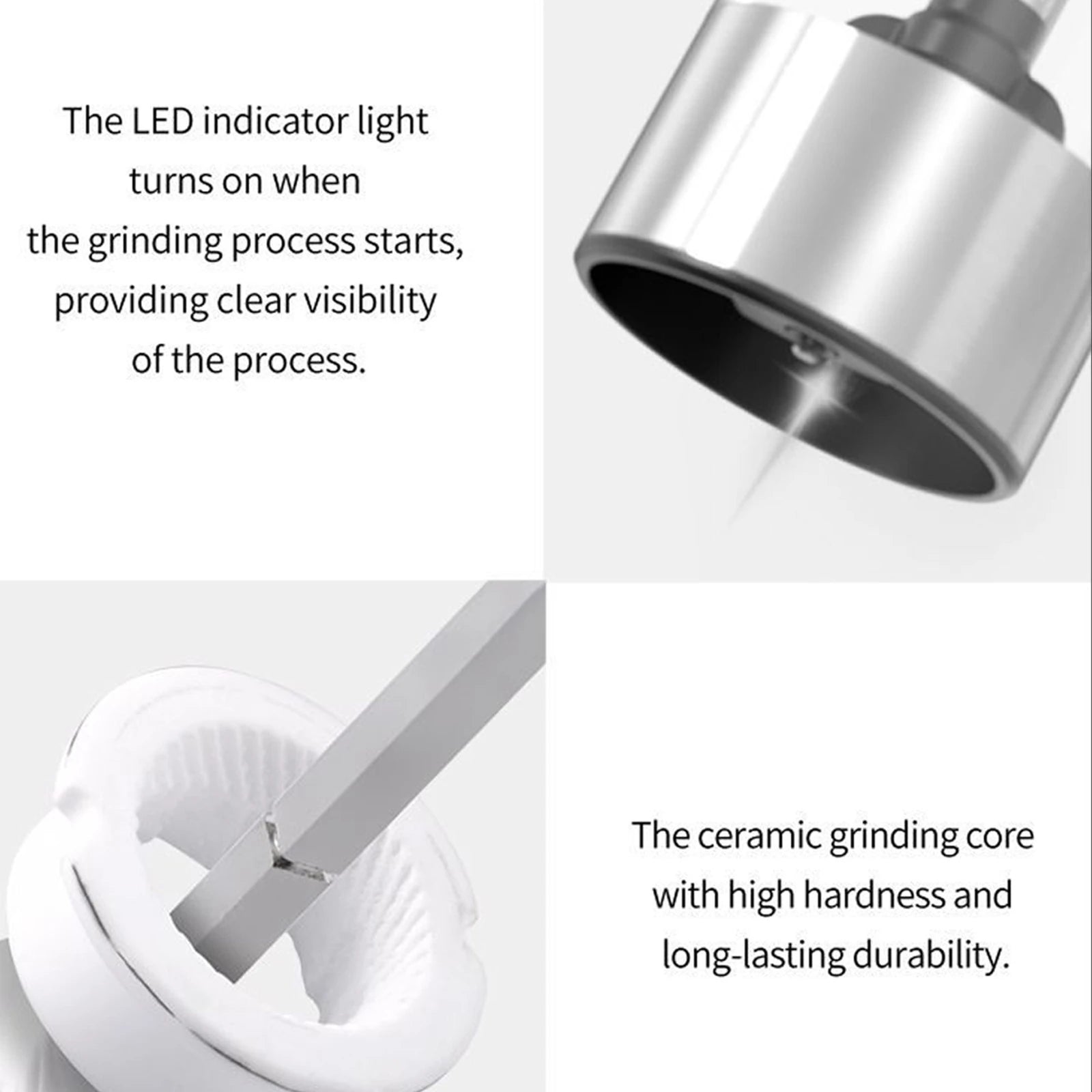 Buit-in White LED Light: The salt and pepper shakers set electric is equipped with a White LED light that automatically lights up when in use. The light is not only bright, but also soft, which allows you to easily see how much seasoning is being dispensed to your food.